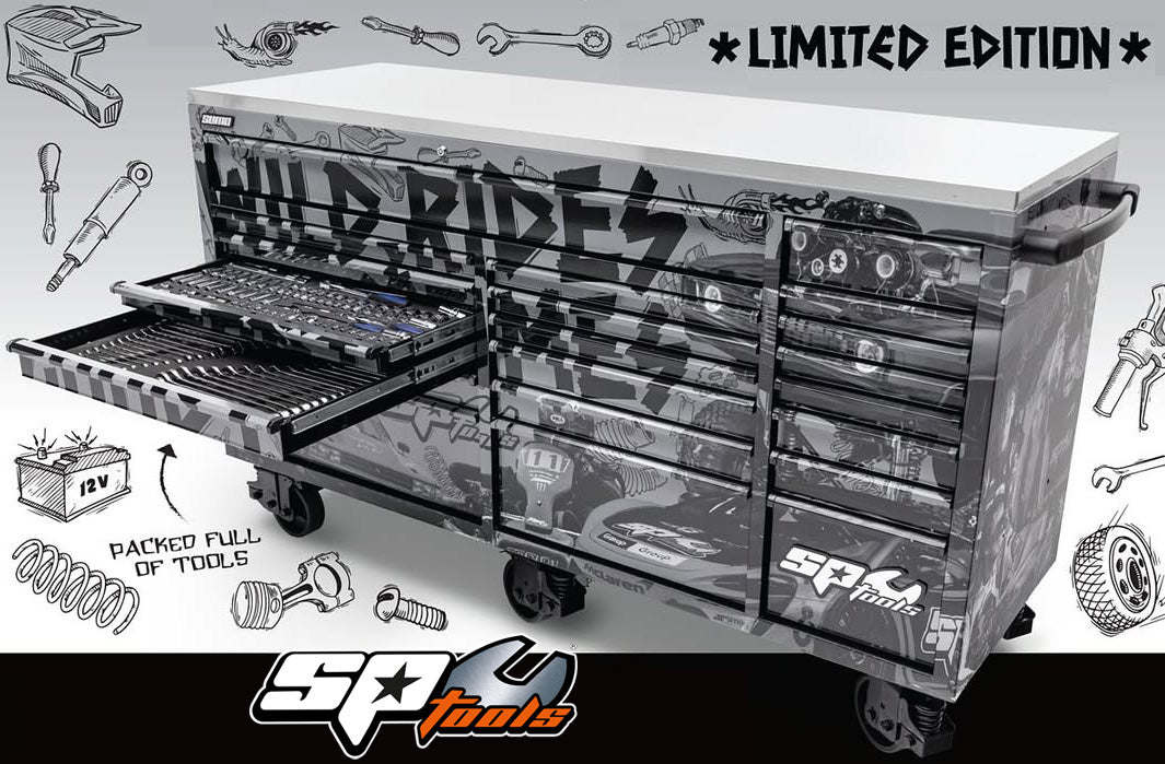 - Servante 7 tiroirs équipée de 4 modules d'outillage de la gamme de servantes d'atelier professionnelles SP Tools Custom Series
